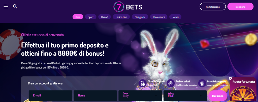 Per iniziare a giocare su 7bets.io, il processo di iscrizione è veloce e intuitivo. La piattaforma mette a disposizione un’interfaccia semplice, così che anche i nuovi utenti possano completare la registrazione in pochi minuti e accedere immediatamente alle promozioni e ai giochi disponibili.