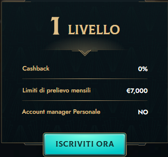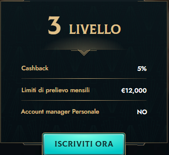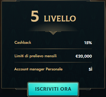 | Livello VIP | Cashback Settimanale | Limite di Prelievo Mensile | Altri Vantaggi |