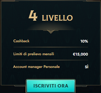 | Livello 4 | 10% fino a €2.000 | €15.000 | Promozioni personalizzate |