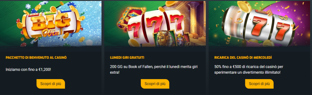 Evobet Casino è attivo dal 2012 e opera con licenza di Curaçao (n. 8048/JAZ2021-155). In Italia è accessibile anche tramite licenza ADM grazie alla collaborazione con Vincitu. Offre bonus di benvenuto fino a 1.000€, cashback settimanali e promozioni per scommesse sportive e casinò live. Accetta pagamenti con carte di credito, e-wallet come Skrill e Jeton, oltre a criptovalute come Bitcoin, Ethereum e Litecoin, offrendo una struttura di pagamento e sicurezza paragonabile a quella di un moderno casino Anjouan online. Il deposito minimo parte da 10€. Il catalogo include oltre 5.000 giochi, tra cui slot, tavoli live e giochi da tavolo, con provider noti come Evolution, Pragmatic Play e Betsoft.