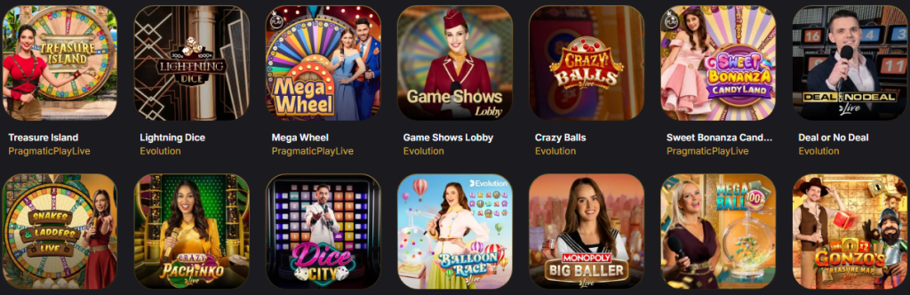 Il casinò offre slot, giochi da tavolo, live casino e game show interattivi con croupier dal vivo.
