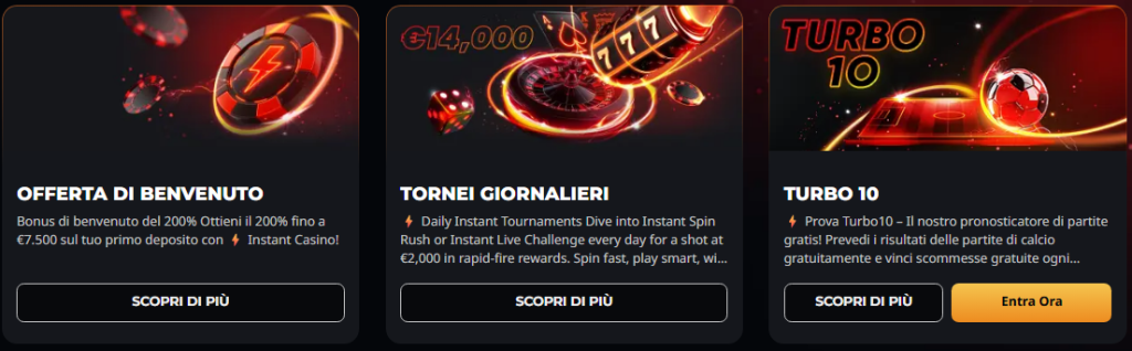 Bonus e promozioni su Instant Casino