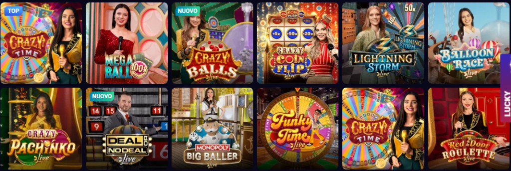- Casinò live – tavoli dal vivo con croupier reali per blackjack, roulette, baccarat e game show interattivi.
