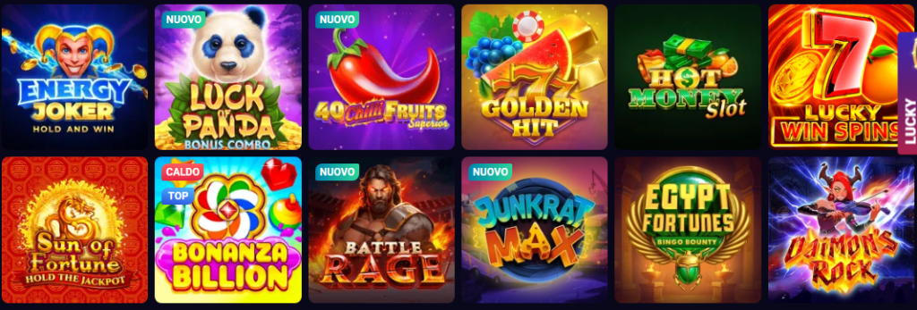 Lucky7even Casino offre un’ampia gamma di giochi progettata per soddisfare le preferenze di ogni tipo di giocatore. Grazie alla collaborazione con fornitori di software di primo piano, la piattaforma garantisce titoli con grafiche di alta qualità, funzioni innovative e un’esperienza di gioco fluida sia da computer che da dispositivi mobili.