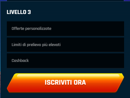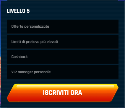 | Livello 5 | Offerte personalizzate, Limiti di prelievo più elevati, Cashback, VIP manager personale |
