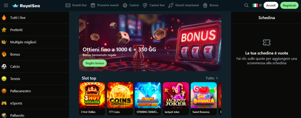 Per accedere e registrarti su RoyalSea Casino è necessario completare una semplice procedura che richiede pochi minuti e ti consente di iniziare a giocare con denaro reale in modo sicuro. L’iscrizione è aperta a tutti i giocatori maggiorenni e permette di usufruire immediatamente dei bonus di benvenuto previsti dalla piattaforma. Durante la registrazione, è importante inserire dati veritieri e aggiornati per evitare problemi futuri con i depositi, i prelievi e la verifica dell’account.