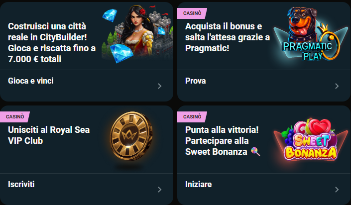 RoyalSea Casino si presenta come una piattaforma moderna e ben strutturata, in grado di soddisfare sia i giocatori occasionali sia gli utenti più esperti. La combinazione di un’ampia libreria di giochi, che include slot, tavoli live e titoli con jackpot, con un’offerta bonus articolata su più depositi, rende l’esperienza di gioco variegata e coinvolgente. La presenza di una licenza internazionale di Curaçao e l’adozione di tecnologie di sicurezza avanzate assicurano un ambiente affidabile, mentre l’attenzione al gioco responsabile dimostra un impegno verso la tutela dei propri utenti. Con pagamenti rapidi, supporto a metodi tradizionali e criptovalute, e un’interfaccia ottimizzata anche per dispositivi mobili, RoyalSea si conferma un’opzione competitiva nel panorama dei casinò online non ADM.