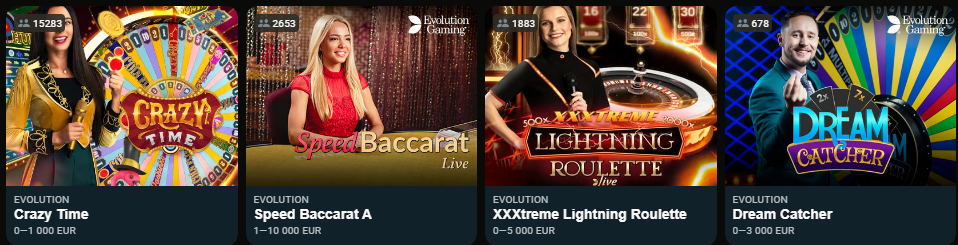 - Casinò live con croupier dal vivo (roulette, blackjack, baccarat, game show)