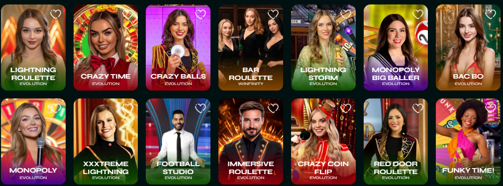- Casinò live con croupier reali per roulette, blackjack, baccarat e game show interattivi