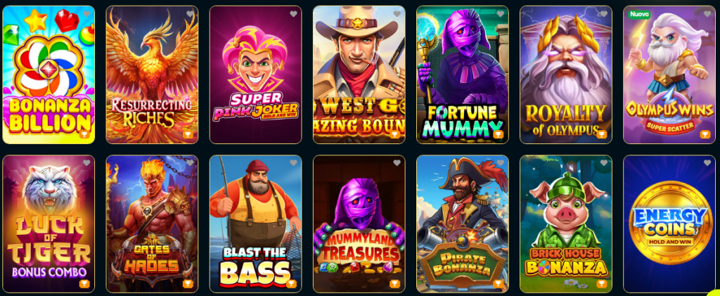 Titoli di Pragmatic Play, NetEnt, Play’n GO, Hacksaw Gaming, Evolution, Yggdrasil, Quickspin, Betsoft e molti altri.