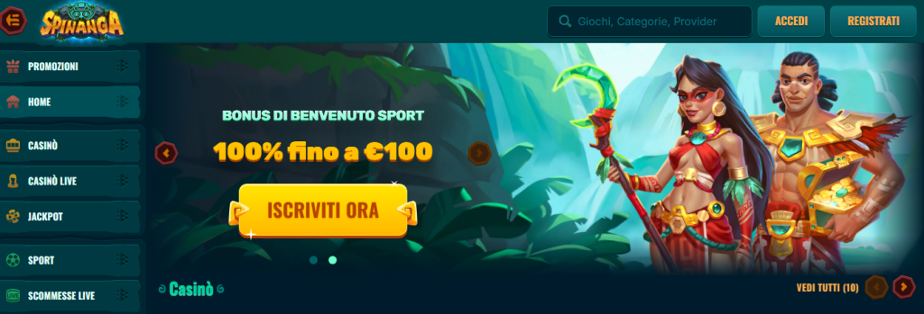 Spinaga Casino è un casinò online lanciato nel 2023 e gestito da Rabidi N.V., con licenza rilasciata a Curaçao (8048/JAZ). Offre un bonus di benvenuto del 100% fino a €500, 200 giri gratuiti e il gioco “Bonus Crab”, con requisiti di scommessa di 35x per il bonus e 40x per le vincite dei giri gratuiti. Supporta Visa, Mastercard, Skrill, Neteller e criptovalute come Bitcoin ed Ethereum, garantendo un’esperienza fluida anche da mobile grazie all’ottimizzazione per le migliori app casino, con depositi e prelievi a partire da €10 e tempi di elaborazione tra 1 e 3 giorni. Il catalogo supera i 4.000 giochi di fornitori come NetEnt, Pragmatic Play ed Evolution, includendo slot, tavoli, jackpot e casinò live. Spinanga dispone anche di un programma VIP a 5 livelli con vantaggi esclusivi per i giocatori più attivi.