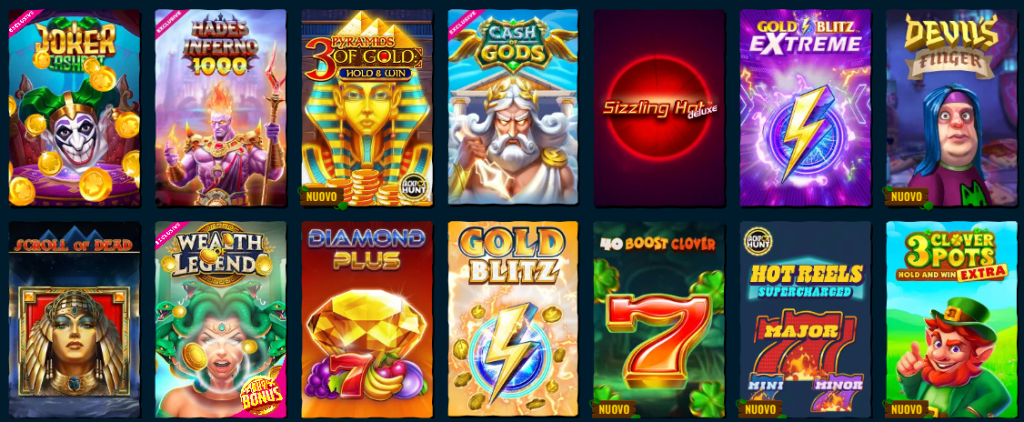 - Giochi Istantanei (Instant Win). Titoli a vincita immediata, come gratta e vinci digitali e mini giochi di fortuna.