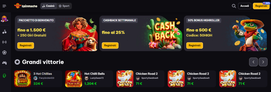 SpinMacho è un casinò online recente ma già ricco di offerte, con un pacchetto di benvenuto generoso, una vasta selezione di giochi e un’ampia scelta di metodi di pagamento, incluse le criptovalute. L’esperienza è accessibile sia da desktop che da mobile, con interfaccia intuitiva e tempi di caricamento rapidi. La licenza di Curaçao garantisce un’operatività legale, seppur con standard di regolamentazione meno stringenti rispetto ad altre giurisdizioni. Nel complesso, SpinMacho rappresenta una scelta interessante per chi cerca varietà di giochi e promozioni frequenti, pur con la consapevolezza dei limiti della sua licenza.