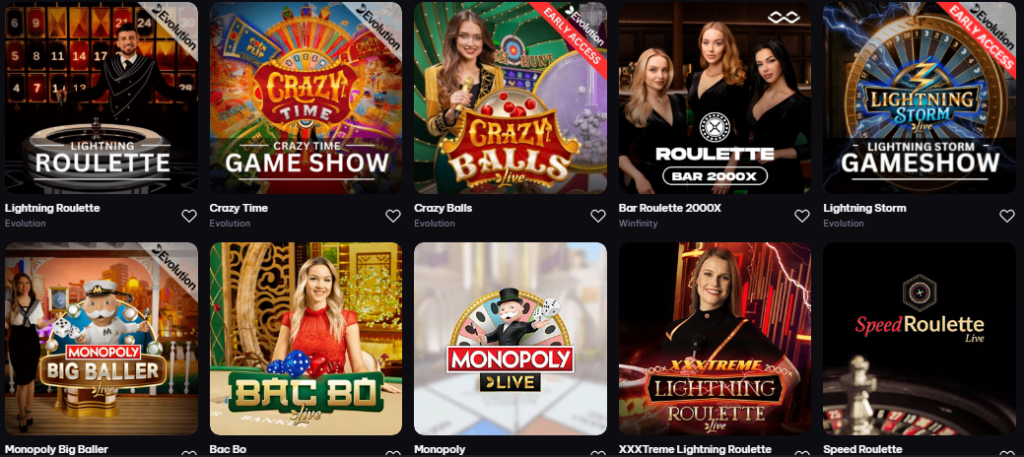 - Casinò live: blackjack dal vivo, roulette dal vivo, baccarat dal vivo, game show interattivi (Monopoly Live, Crazy Time, Dream Catcher).