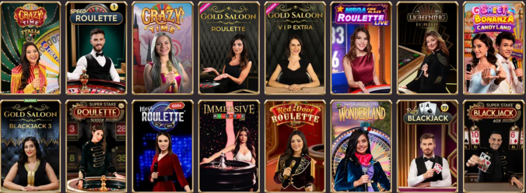 - Game show dal vivo (come Crazy Time, Monopoly Live, Dream Catcher)