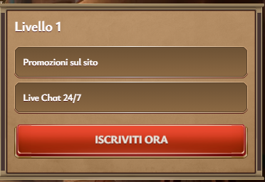 | Livello 1 | Promozioni sul sitoLive Chat 24/7 |