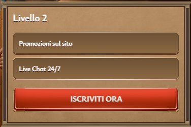 | Livello 2 | Promozioni sul sitoLive Chat 24/7 |