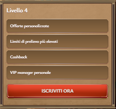 | Livello 4 | Offerte personalizzateLimiti di prelievo più elevatiCashbackVIP manager personale |
