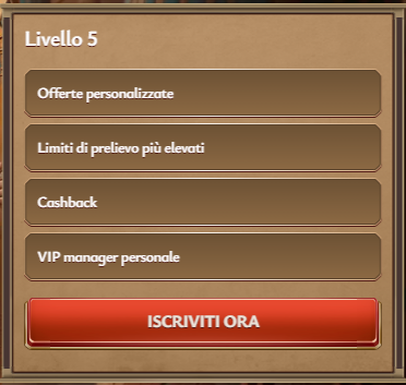 | Livello 5 | Offerte personalizzateLimiti di prelievo più elevatiCashbackVIP manager personale |